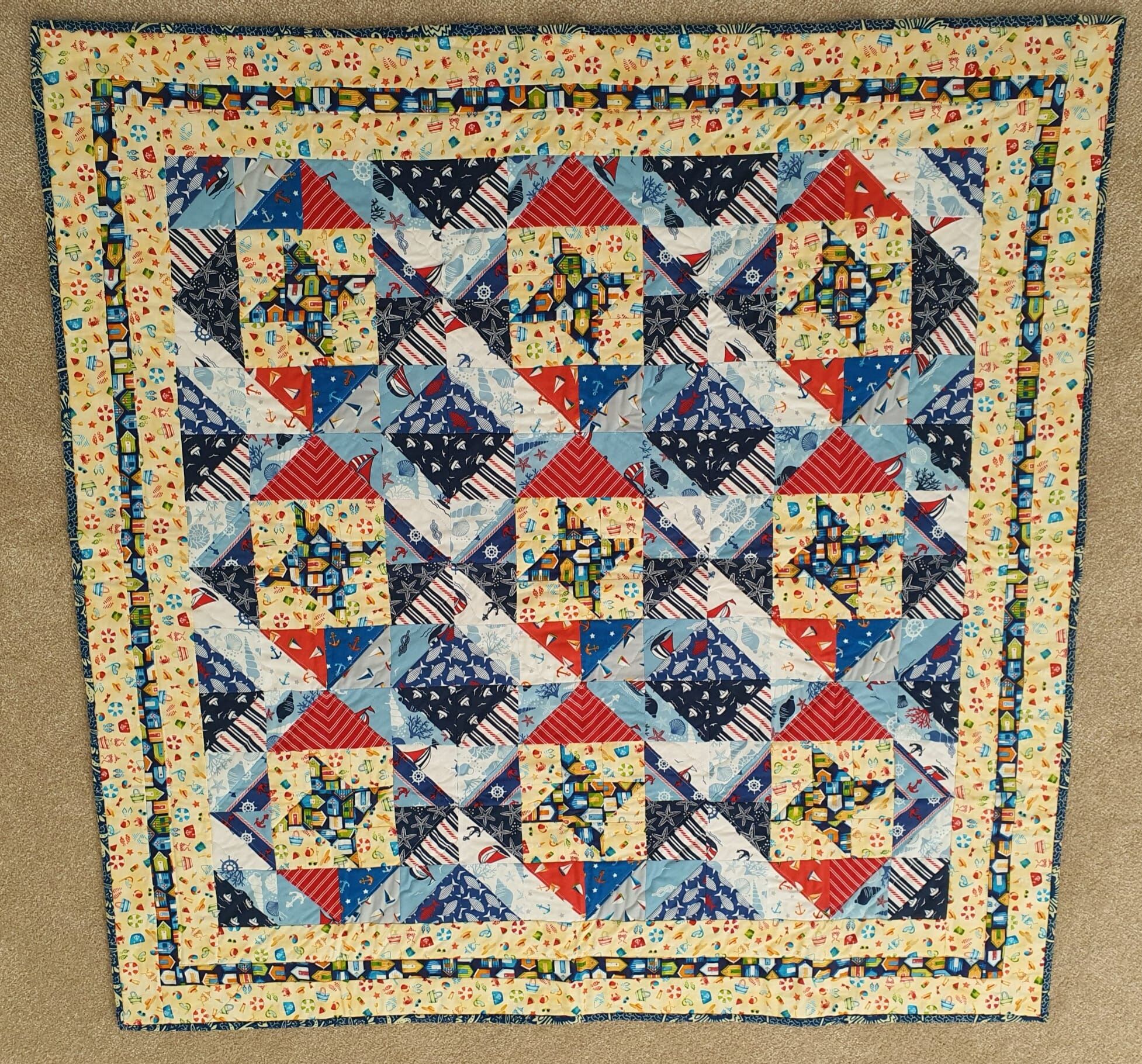 This project is ideal for beginners as it is based on half square triangles and the Friendship Star block.