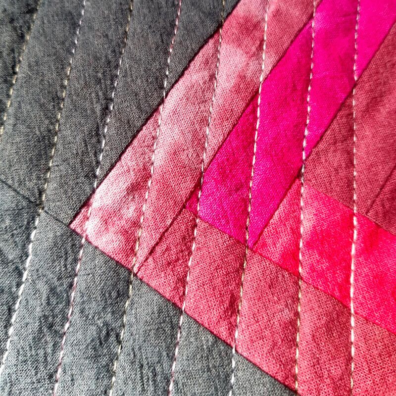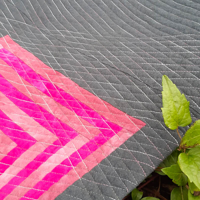 This is a dramatic quilt which showcases a very traditional block in a modern setting. It utilises some key design concepts of the modern movement – large areas of negative space, variations in scale and nice clean lines.